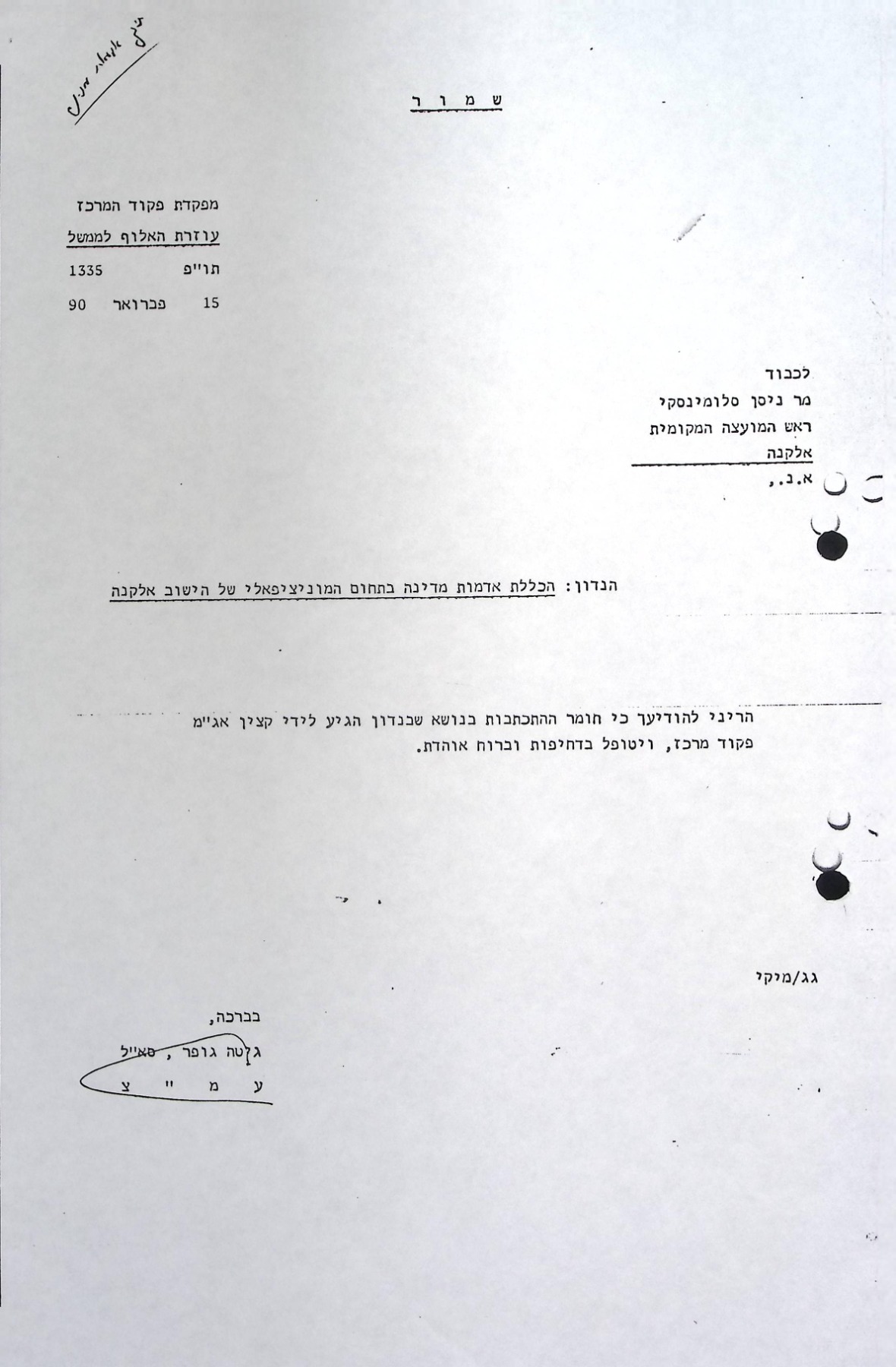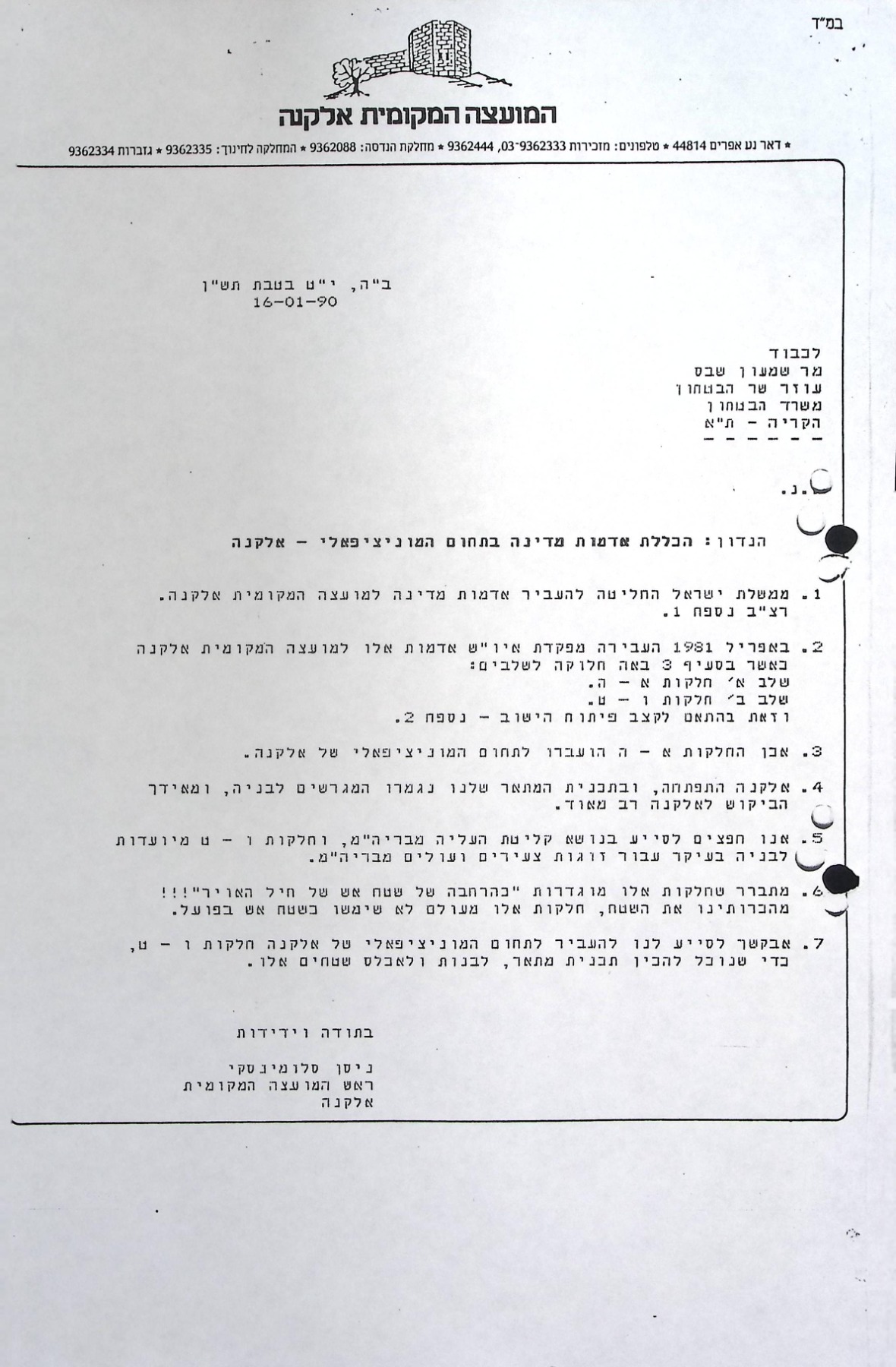 הכללת אדמות מדינה בתחום המוניציפאלי - אלקנה