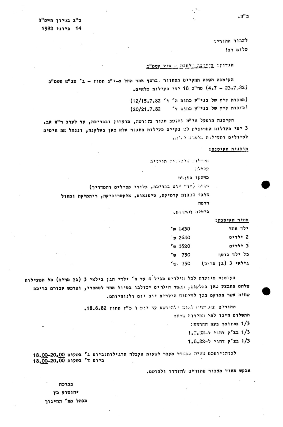 מסמכים היסטוריים - שנים ראשונות (1984-1977)